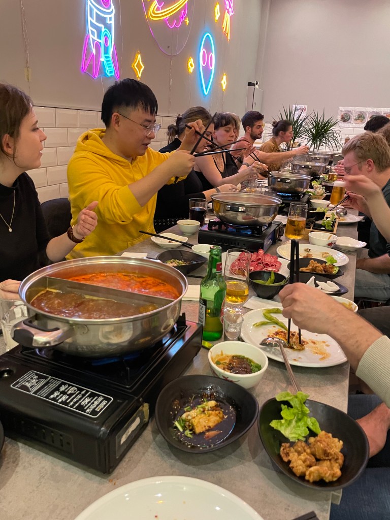 Shrimp, beef, pork, chicken, crab, fish, tofu, mushrooms – sampling a significant portion of the tree of life in hot pots at Nin Hao Chinese restaurant (chosen by our resident hot pot expert Jijia).